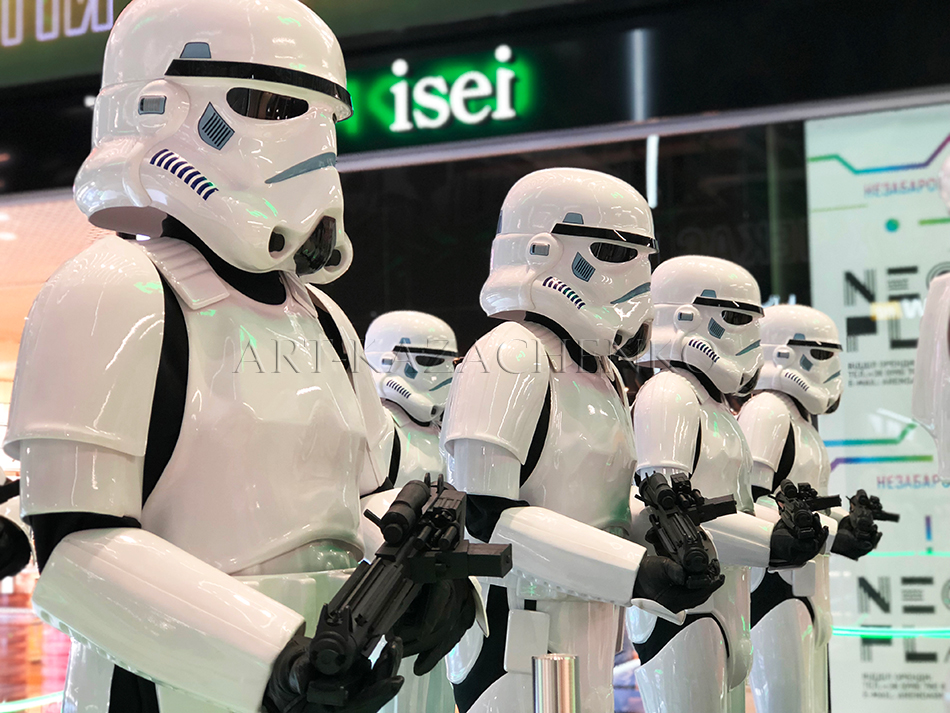 Роботи з пластику виготовляються трохи інакше. Також створюється 3-D макет на комп’ютері, далі мініатюра з глини або пластиліну. Наступним кроком буде створення форм для відливання. Цей процес дуже важливий та відповідальний, тому що від нього залежить кінцевий результат. Після виготовлення форм починається процес відливання деталей фігури. Одну за одною фахівець виплавляє деталі, а коли виплавка закінчена — з’єднує деталі воєдино.